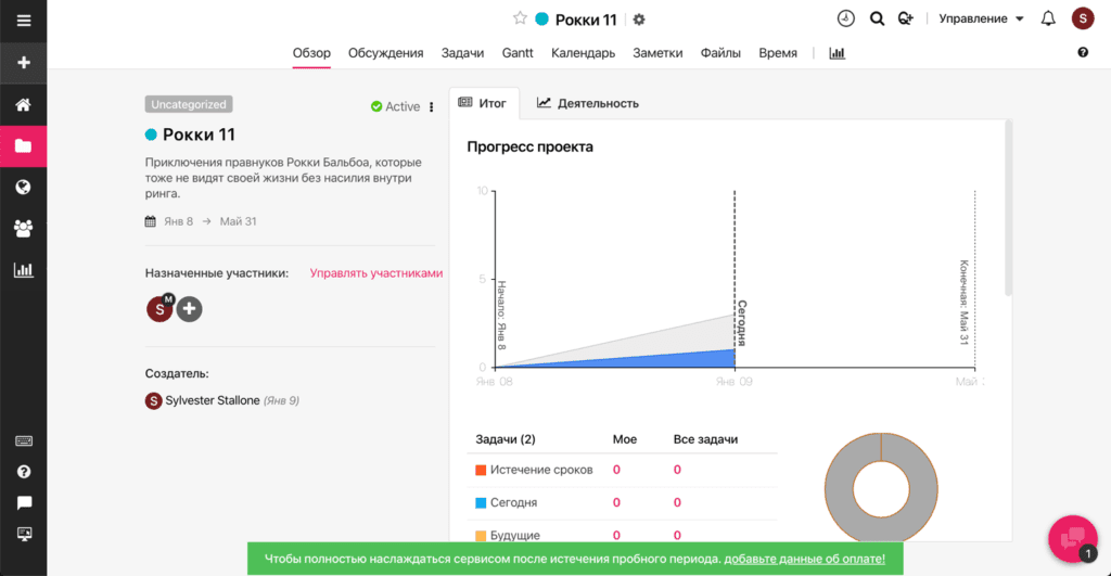 Мы решили добавить проект нашему Сильвестру Сталлоне. Пускай это будет распоследняя часть похождений Рокки Бальбоа. Добавили участников, сроки выполнения и даже цвет.