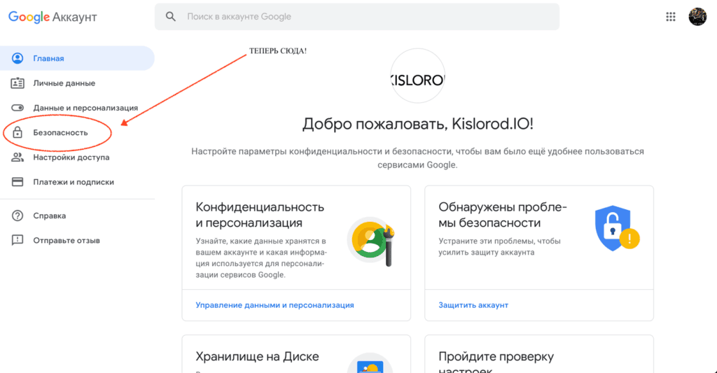 Жмем туда и входим в свой личный гугл-кабинет. Внутри него нас, как уже было сказано, интересует вкладка «Безопасность».