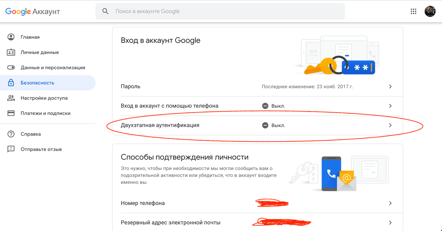 Давайте, например, включим двухэтапную аутентификацию в Google, внутри которого у вас точно спрятана тонна всяких нужностей, вроде почты, Youtube, истории поиска, документов и чего-нибудь еще.