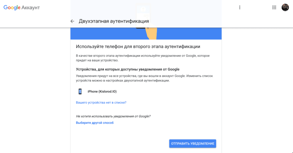 А теперь выбираем один из привязанных к аккаунту гаджетов. В нашем случае, это вездесущий, исцарапанный офисный iPhone 5S, на который и приходит push-уведомление о том, что некто хочет внедрить двухфакторную аутентификацию. Вводим нужные коды.