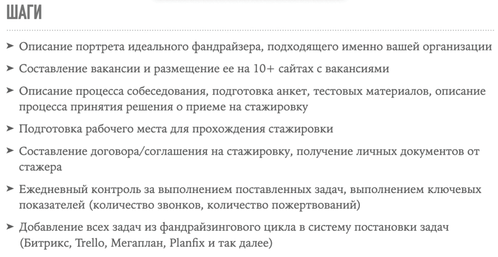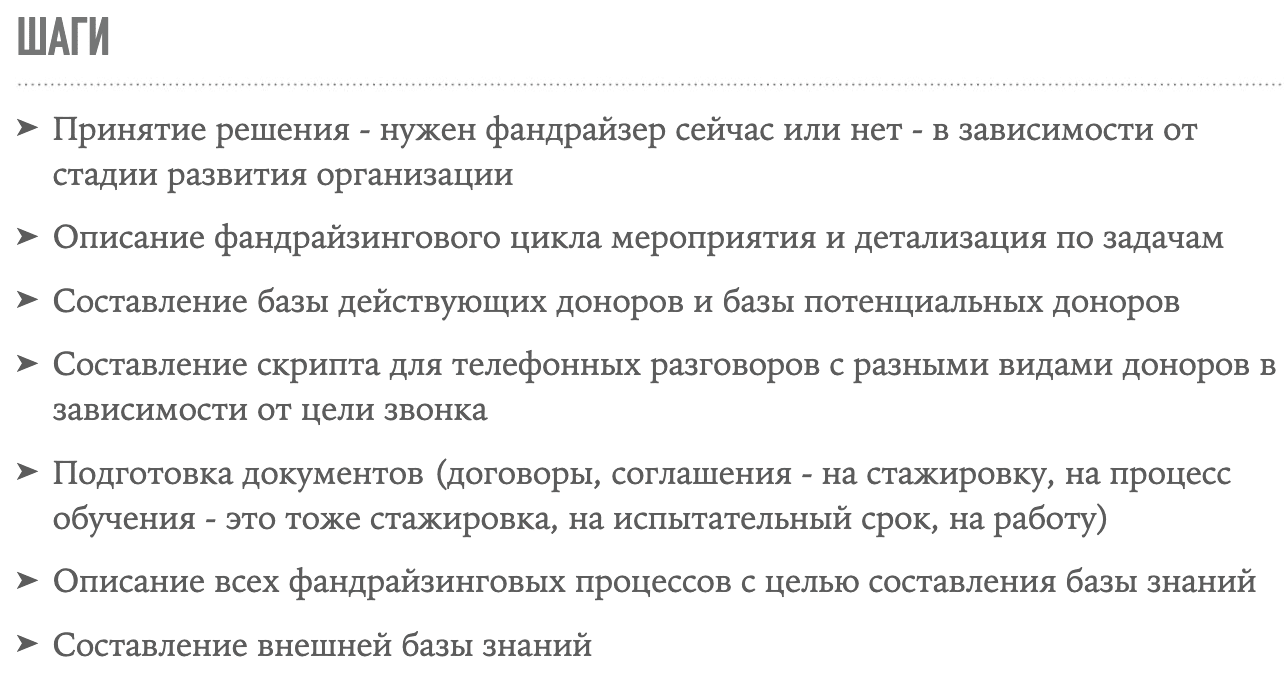 Вы не думайте, что постоянный найм новичков освобождает вас от кипучей фандрайзинговой деятельности. Чтобы найти правильного человека, вам самим нужно подготовиться. Для этого надо совершить несколько семимильных шагов.