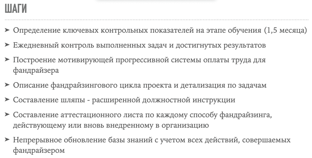 Это база для составления фандрайзинговых инструкций. Цикл включает в себя: